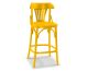 Banqueta em madeira maciça com estrutura torneada e acabamento colorido em pintura de laca fosca de alta qualidade, considerando o equilíbrio e a ergonomia adequada.