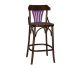 Banqueta em madeira maciça com estrutura torneada e acabamento em verniz, encosto com detalhe colorido em pintura de laca fosca de alta qualidade, considerando o equilíbrio e a ergonomia adequada.