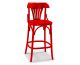 Banqueta em madeira maciça com estrutura torneada e acabamento colorido em pintura de laca fosca de alta qualidade, considerando o equilíbrio e a ergonomia adequada.