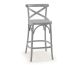 Banqueta com estrutura torneada e encosto cruzado, considerando o equilíbrio e a ergonomia adequada.