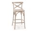 Banqueta com estrutura torneada e encosto cruzado, considerando o equilíbrio e a ergonomia adequada.