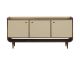 O Buffet Dylan é ousado, ângulos criam um nicho acomodado sobre pés palitos enriquecendo o estilo e a estrutura do móvel. Os puxadores anatômicos em forma circular fazem um contraponto com as portas de ângulos retos que recebem pintura em laca fosca de alta qualidade.