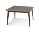 Mesa com estrutura em madeira maciça de fonte renovável com acabamento em verniz natural.