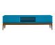 A Abertura das duas gavetas é por toque o que permitiu a ausência de puxadores, assim o visual ficou mais limpo e mais fácil de combinar com diversas decorações, nichos com prateleiras de vidro, e detalhe do acabamento como os cantos chanfrados e arredondados dão leveza e deixam o móvel mais sofisticado.
